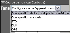 manuelle, STD, DUR ou ORG, une deuxième liste vous permet d'affiner le réglage de la courbe de