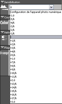 Ce paramètre vous permet de corriger l'exposition de votre photo, de -1 à +3 IL, par palier de 1/6 d'IL.